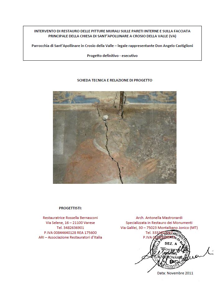 Sarà inoltre cura dell’impresa che attuerà le perforazioni, unitamente al restauratore in loco, riacquisire la piccola porzione di affresco soggetta a perforazione allo scopo di ripristinare il materiale originario.